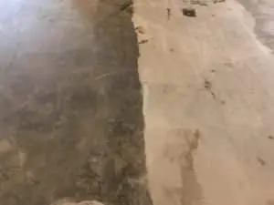 Once the floor is ground down, we will address any imperfections into the concrete. Cracks and spalling (divots in concrete caused by the elements), will be filled in with a concrete patch.